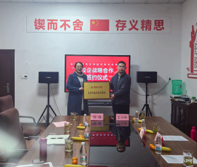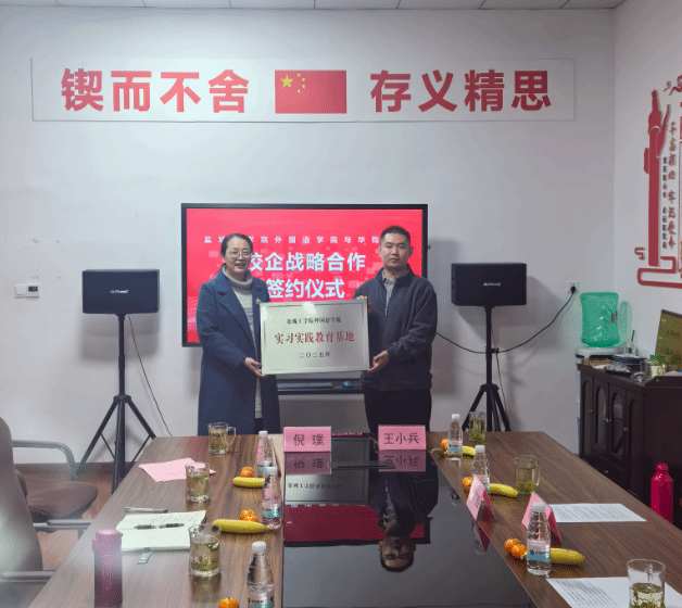 随后,外国语学院党总支副书记倪璞与华钧职教盐城校区总校长王小兵作为双方代表,郑重签署《就业实习基地共建协议书》。根据协议约定,双方共同为“实习实践教育基地”“大学生就业创业基地”两大合作平台揭牌,标志着校企在实践教学、就业创业指导等领域的协同育人合作正式落地,为后续深度合作奠定坚实基础。