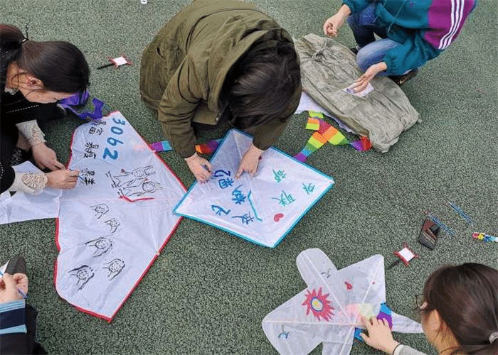 活动当天天气晴朗,微风阵阵。同学们结伴来到操场,拿出事先准备好的纸笔、颜料等工具分组开始制作风筝。同学们尽情发挥自己的创意,用自己的双手为风筝增色添彩,同时在风筝上写下了自己对新年新学期的美好期望以及大学四年各自的成长规划。最后同学们将寄予着自己梦想的风筝放飞。看着满天飞舞的风筝,同学们脸上都洋溢着灿烂的笑容。本次活动不仅放飞了同学们的梦想,同时增进了同学们之间的感情,加强了同学们的交流与合作,丰富了同学们的课余生活。