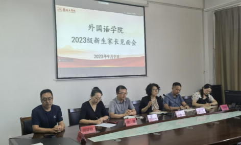 9月9日下午,外国语学院在润美楼A404会议室召开2023级新生家长见面会暨心理健康座谈会,外国语学院院长齐金花、党总支书记谷文华、副院长吴斌、英语系主任周学恒、日语系主任王祁阁、学工办副主任周良尧和新生辅导员徐栋阳出席本次见面会,九十余位新生家长受邀参加线下见面会,未能到场的家长也以线上的形式参与了本次活动。党总支副书记倪璞主持会议。