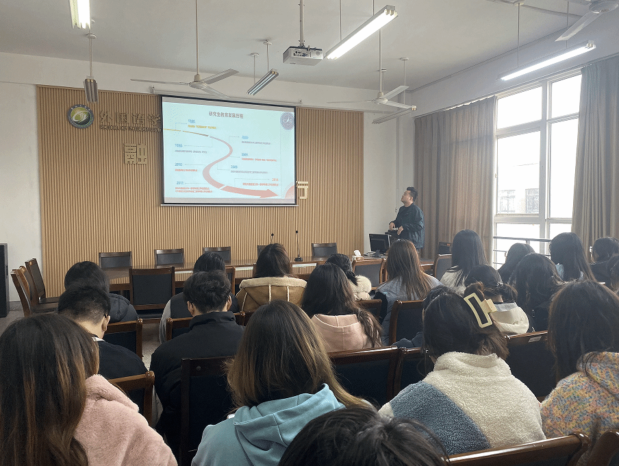 李凯老师详细介绍了扬州大学的百年辉煌校史,作为一所享有盛誉的综合性大学,其深厚的文化积淀为外国语学院的发展提供了肥沃土壤。宣讲会上,李凯围绕扬州大学的办校历史、学校发展、学科优势、师资力量、科研成果、研究生发展历程、硕博士学位授权点等方面开展。对学生特别关心的招生政策、考试科目、培养方案、奖助学金等问题进行了耐心细致的解答。B英语221班的吴明玉说“这次的宣讲会让我详细了解了研究生考试的方向和内容,对我未来考研学习提供了指导”。