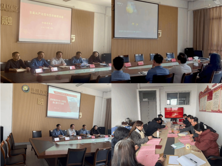 3日25下午,外国语学院在润美楼A404会议室召开2025年全面从严治党工作大会,学院党政班子成员、党支部书记、各科室、专业系负责人、全体教师党员主任出席会议,学院党总支书记刘正华主持会议。