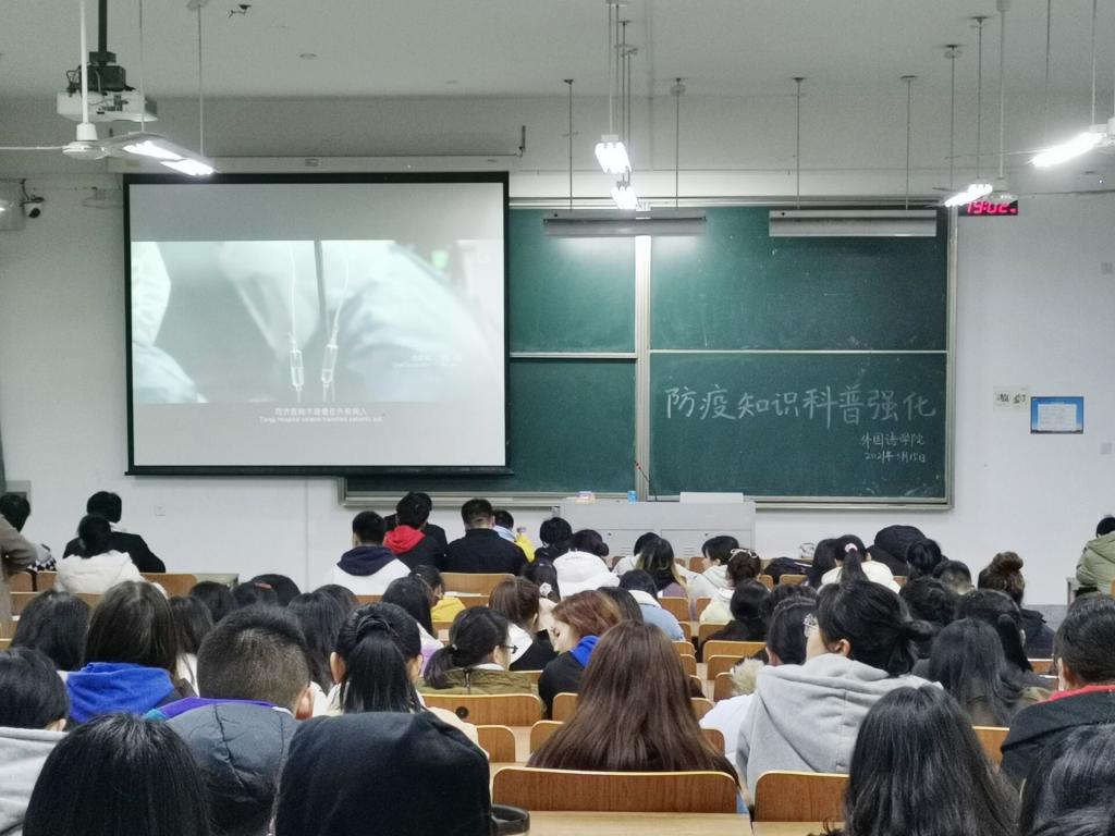 为了科普强化防疫知识,使各班了解抗疫防疫知识,2021年3月15日晚七点,在博学楼D415,我院宣传推广部组织大一学生观看抗疫纪录片《金银潭实拍80天》。本次活动上,同学们都严肃认真,聚精会神,郑重地注视着屏幕,不少同学都眼泛泪花。