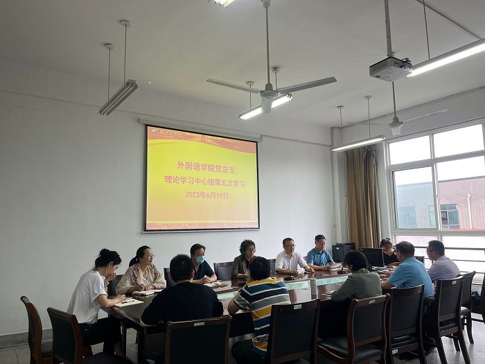6月19日上午,外国语学院党总支在润美楼A404会议室开展了2023年春学期理论学习中心组第五次学习。学院党总支书记谷文华主持,学院理论学习中心组全体成员参加。