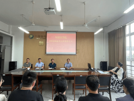 10月11日下午外国语学院在润美楼A404会议室召开2025年第二次课程思政政策文件集体学习会。学院领导班子成员及全体教师参会,会议由副院长周学恒主持。