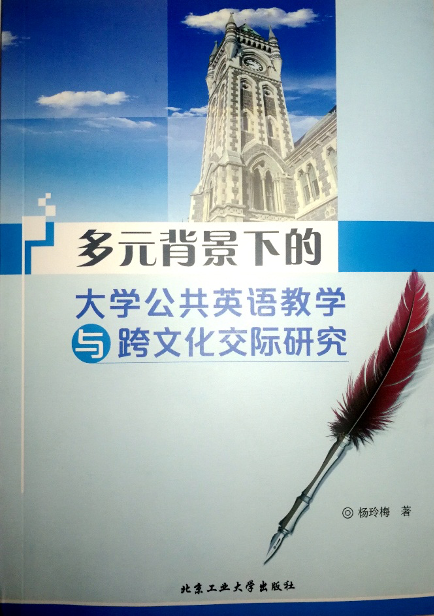 《多元背景下的大学公共英语教学与跨文化交际研究》,杨玲梅著,2018年6月于北京工业大学出版社出版,全书21.6万字。该著作获得盐城市第十三次哲学社会科学优秀成果三等奖。